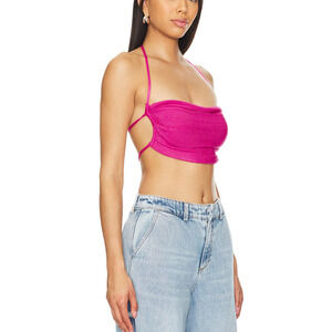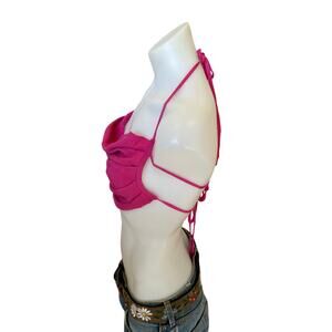 Lovers + Friends Pink Halter Top XS Crochet Festival Crop Cowl Revolve $118 NEW