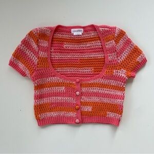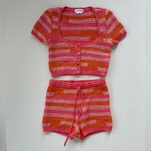 Lovers + Friends Pink Orange Eliava Crochet Cardigan Shorts Set Size XS NWOT