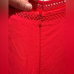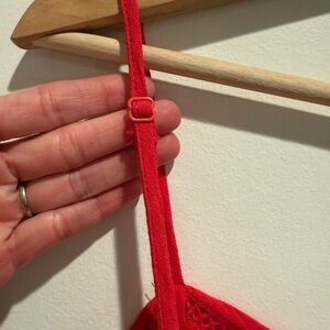 Elegant scarlet top with intricate strap design.