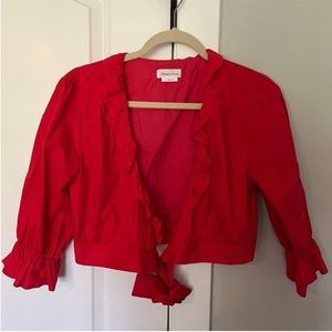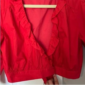 Lovers & Friends Red Ruffle Cropped Wrap Top Blouse Revolve