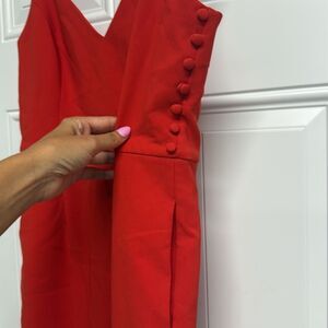 Lovers + Friends Red Spaghetti Strap Jumpsuit with Button Side Design - Pockets