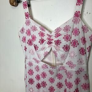 Lovers Friends Reece Cotton Floral Daisy Embroidered Barbiecore Midi Dress White