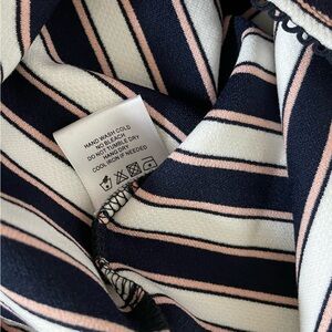 This cute Lovers + Friends (Lovers & Friends, Lovers and Friends) pencil skirt is size extra small. This bodycon mid skirt is sold online & at Reformation and comes in this navy & baby pastel pink stripe pattern. The borders have a cute black embroidered stitching✨