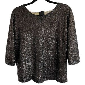 Gorgeous black sequin top from the Revolve brand Lovers + Friends. All over sequins with a petal back closure. Fabric covered buttons down the back- the top is a snap button and the rest are concealed buttons. Size Medium and in excellent preowned condition; no visible flaws.