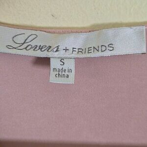 Lovers + Friends Revolve Love Happy V Neck Faux Wrap Ruched Dress Size S. Pit to pit 21", shoulder to hem 34", 3/4 Sleeve, Elastic Waist, Neutral Mauve Pink, Deep V Neck, Very Faint Mark As pictured, Retail $168. Good Pre-Owned Condition