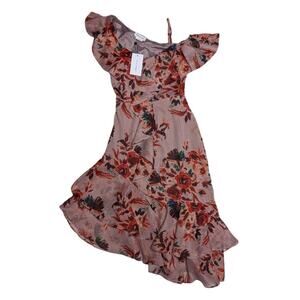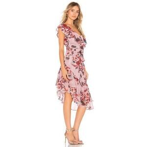 Lovers + Friends Revolve Midi Dress Pink Stacy Floral Ruffle One Shoulder XXS