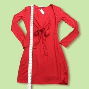 lovers + friends dress tie front stone cold Long Sleeve XS NWT Red