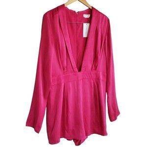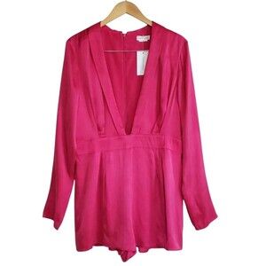 Lovers + Friends Romper Women's XL Pink Long Sleeves Deep V-Neck Lined NWT