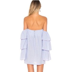 Lovers + Friends Ronita Dress Off The Shoulder Tiered Ruffle Long Sleeve Blue