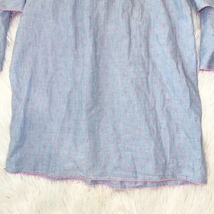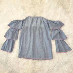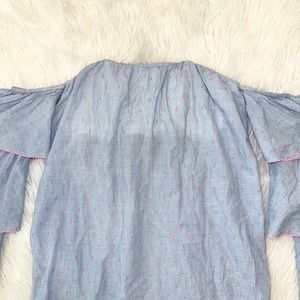 Lovers + Friends Ronita Dress Off The Shoulder Tiered Ruffled Sleeve Blue/Pink