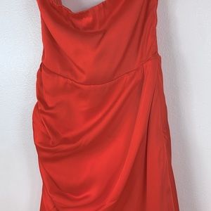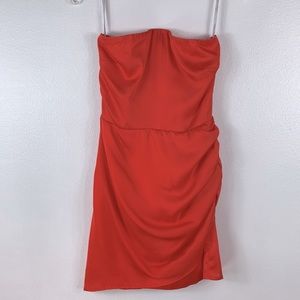 Satin feel and gently ruched skirt detail, this red-hot strapless mini dress is classically cut, showcasing your figure in all the right places.