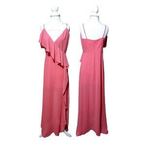 Lovers + Friends Salmon Pink Cocktail Bridesmaid Sleeveless Ruffle Leg Split M