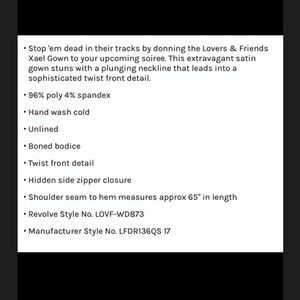 Lovers + Friends Satin Gown. Size 0. NWT.