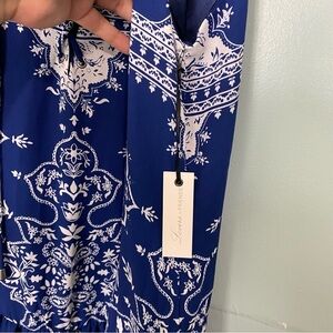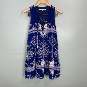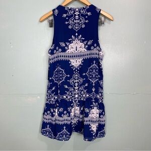 Lovers & Friends Scarf Temple Print Sleeveless Mini Blue White Sz Small