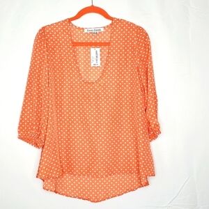 HOST PICK!! NWT Lovers & Friends Polka Dot Blouse Size M. Lightweight, silky, orange and white polka dot print is a great pop of color to your spring or summer wardrobe.