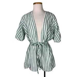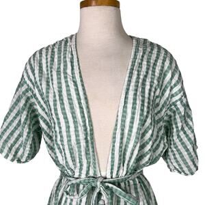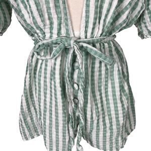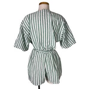 Lovers + Friends Simon Romper Green White Striped Plunge V-Neck Womens XL