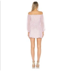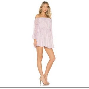 Lovers + Friends Small World Traveler Dress Pink Polka Dot Off Shoulders ac15