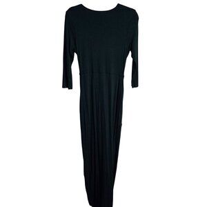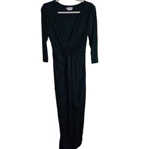Elevate your style with the Lovers + Friends Sundance Maxi Dress in Everglade Green. Featuring a deep V-neck, 3/4 sleeves, and a knot front, this high-low hem jersey dress is perfect for any occasion. Retail $178