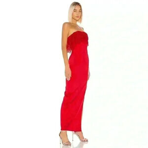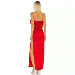 Lovers + Friends Sylvia Red Maxi Strapless Lace Ruffle Pencil Slit Dress Size S