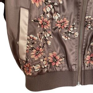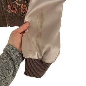 Lovers Friends The Worldwide Bomber Jacket XS Purple Embroidered Floral Stains