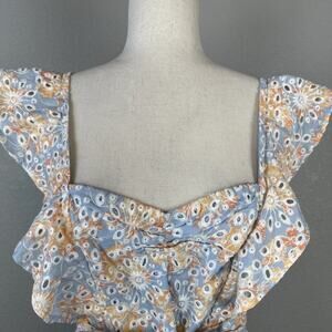 Lovers & Friends Tulip Mini Dress Size M Booklyn Eyelet Blue Floral Cotton