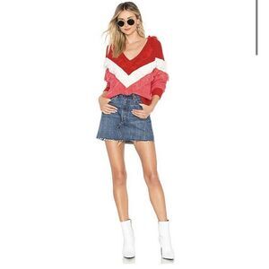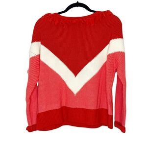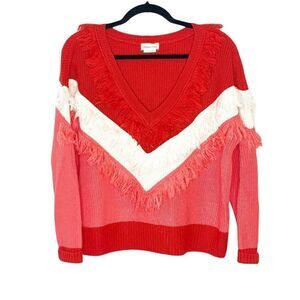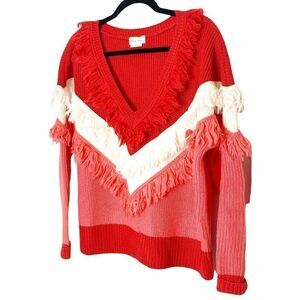 Lovers & Friends Valentines Red Pink White Acrylic Wool Knit Fringe Sweater XS