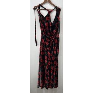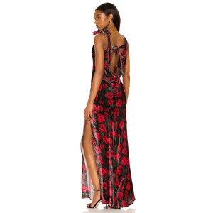 Lovers Friends Velvet Dress Large Roses Floral Black Red Slit Gown Jackie