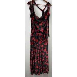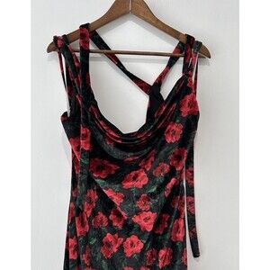 Lovers Friends Jackie Velvet Dress Large Rose Floral Black Red Slit Whimsigoth Gown Red and black Maxi Elegant Feminine
