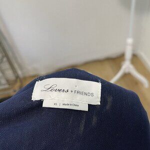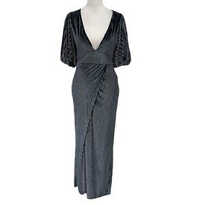 Lovers & Friends Velvet Ribbed Puff Sleeve Front Slit Maxi Dress Blue size XS