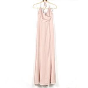 Lovers + Friends Vilailuck Gown Blush Pink Satin Maxi Dress Halter Sz XS