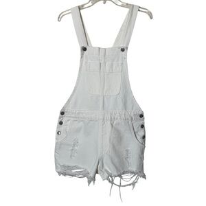 Lovers + Friends White Denim Short Overalls | Size Small | Distressed