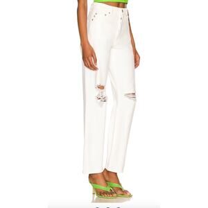 Lovers + Friends White High Rise Straight Jeans SIZE 31 Rigid Busted Knee Revolve $158 NEW