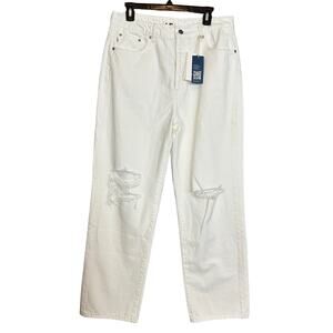 Lovers + Friends White Straight Jeans SIZE 31 Rigid Busted Knee High Rise $158