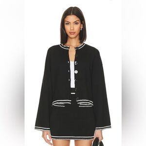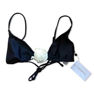 Lovers + Friends Willa rosette triangle Top Black White Bikini swim Revolve M