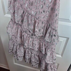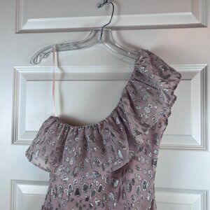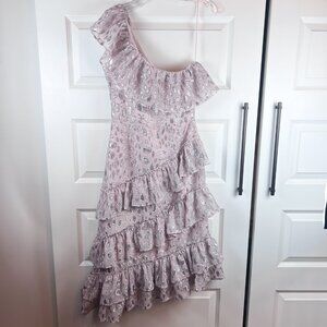 Lovers + Friends Willow Pink Metallic One Shoulder Ruffle Tiered Mini Dress