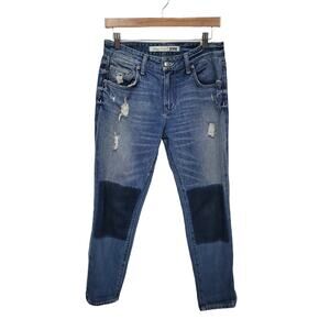 Lovers + Friends Women's Ezra Slim Boyfriend Jeans Size 26 Patchwork 90s Grunge
