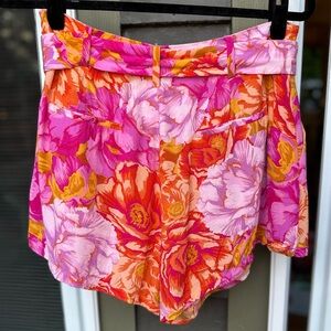 Embrace summer vibes with the Lovers + Friends high waist shorts, showcasing a stunning blend of pink and orange hues. These shorts feature a comfortable high waist design, perfect for casual outings or beach days. Crafted from lightweight fabric, they offer a breezy and relaxed fit, making them an essential addition to your warm-weather wardrobe.