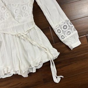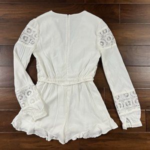 Lovers + Friends Women's Size Small White Crochet Jesse Romper Long Sleeve