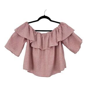 Lovers + Friends XS Red and White Striped Off the Shoulder Blouse