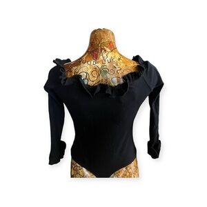 Lovers + Friends bodysuit black ruffle collar Medium one piece