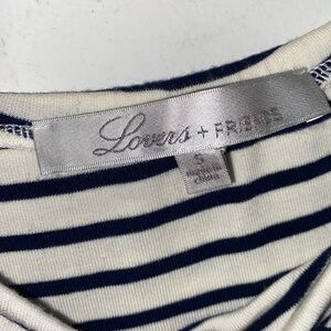 Lovers + Friends dress navy blue white striped off the shoulder small stretch