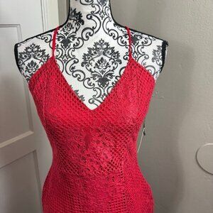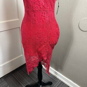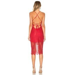 Lovers & Friends red lace SKYLIGHT DRESS with lace up back.