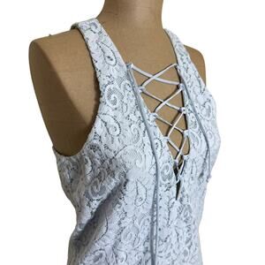 Lovers + Friends size XS Mini Dress Revolve Light Blue Lace Sleeveless A Line