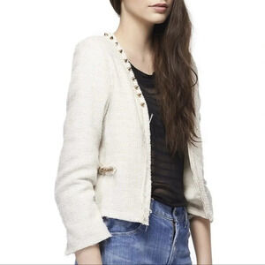 Lovers + Friends x Because I’m Addicted REVOLVE Tweed Stud Jacket Cream ASO