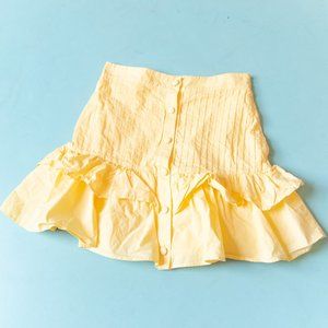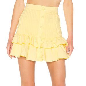Lovers + Friends x Revolve Beau Yellow Pleated Ruffle Hem Button Mini Skirt Sz S