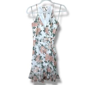 Lovers + Friends x Revolve NWOT Pink Floral Flutter Wrap Tie Mini Dress Small