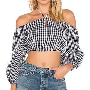 Lovers + Friends x Revolve Women’s Addison Off Shoulder Gingham Black Crop Top