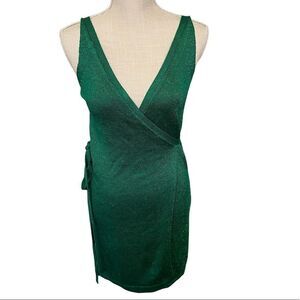 Gorgeous Lovers + Friends Wrap Up Sweater Dress in Kelly Green. Flecks of metallic thread bring beaming confidence to the classic wrap silhouette, while the self-tie belt defines your feminine shape. This is new with tags but there are a few imperfections to note because the material is very delicate and snags easily. I took pictures of the interior as there are 3 small snags shown. They’re very small and don’t show on the exterior but imperfections none the less. Size XS. Shoulder seam to hem measures approx 33" in length. Material has a good amount of stretch.