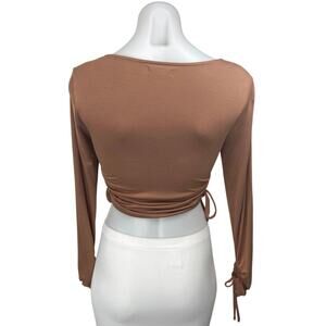 Lovers and Friend Brown Long Sleeve Ruched Faux Wrap Blouse Crop Top Size S