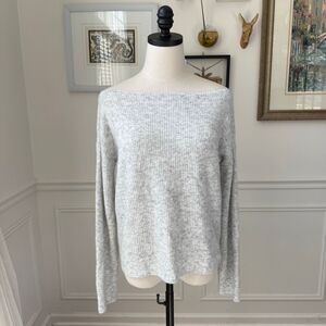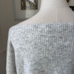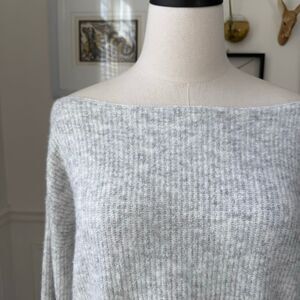 Lovers and Friends Alayah Off Shoulder Sweater in soft grey. $158 retail. 49% acrylic, 47% nylon, 4% spandex
